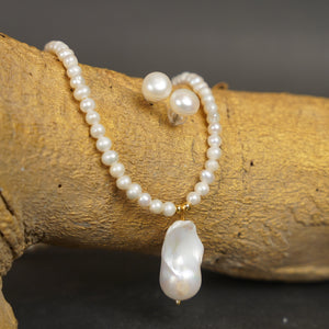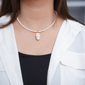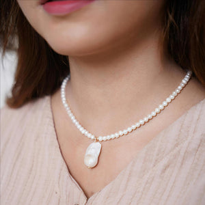 Elevate your elegance with our Freshwater Pearl Necklace featuring a stunning baroque pearl pendant. This timeless piece blends classic sophistication with modern charm. Hand-strung with luminous freshwater pearls and finished with a unique, natural baroque pearl drop, it adds a refined touch to any outfit—perfect for weddings, parties, or everyday elegance.