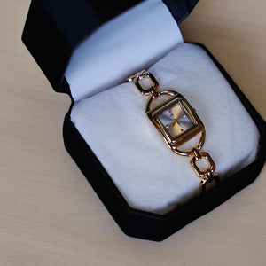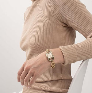 • Premium gold-tone stainless steel bracelet with signature rectangular case