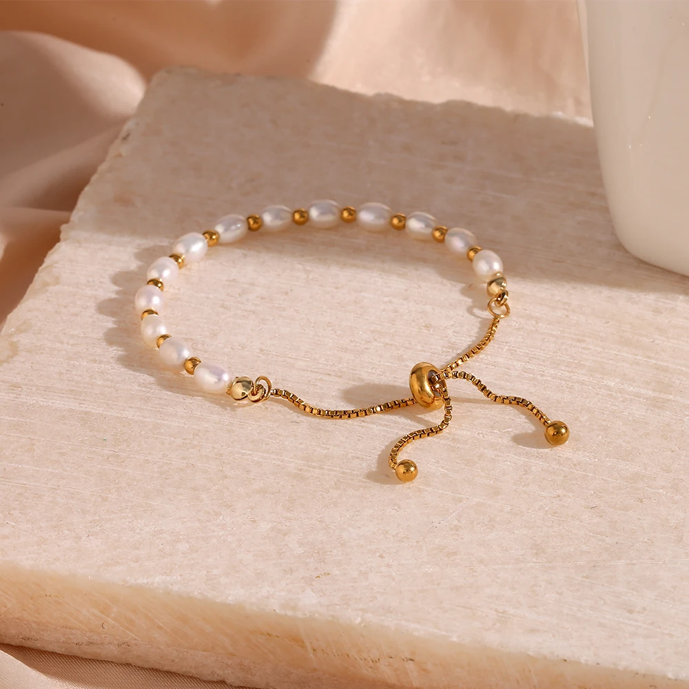 Elegant Freshwater Pearl Bracelet – 18K Gold Plated Beaded Bracelet