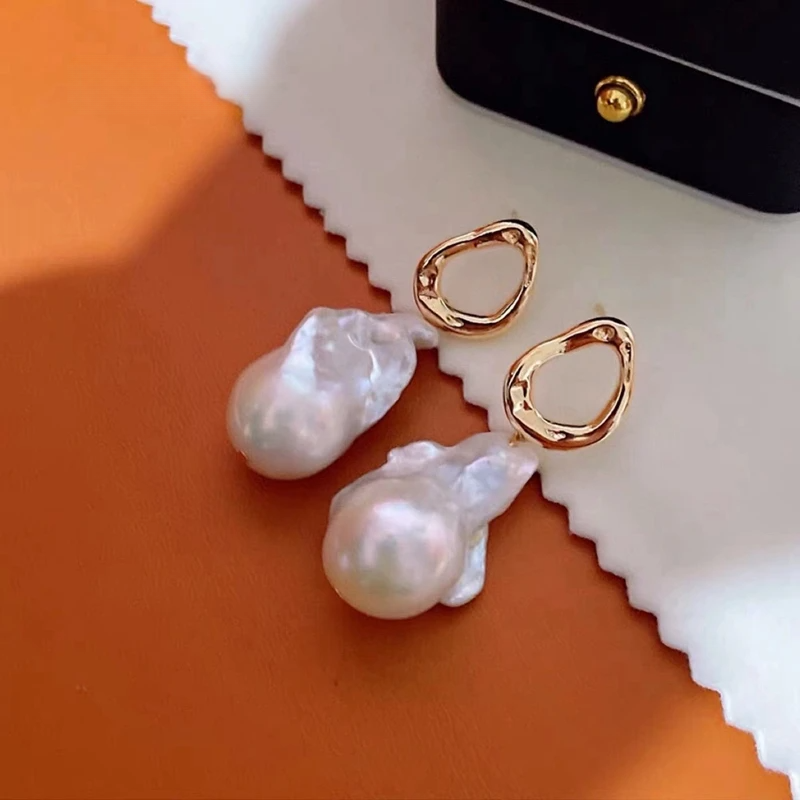 Luxury Baroque Pearl Drop Earrings with Sculpted Gold Studs