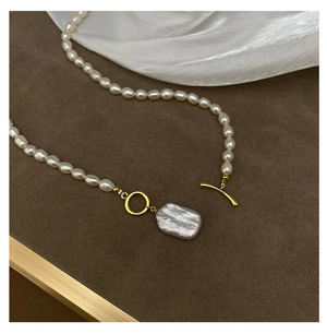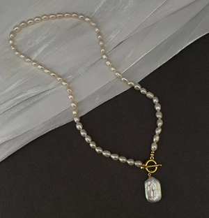 Elevate your jewelry collection with this stunning Freshwater Pearl Necklace featuring a unique Baroque Pearl Pendant. Handcrafted with high-quality freshwater pearls, this elegant piece showcases a lustrous, irregular baroque pearl that adds a touch of sophistication and individuality. The necklace is finished with a gold-plated toggle clasp, making it easy to wear while adding a modern charm.
