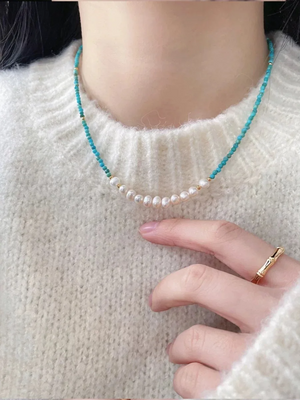 Home Exquisite Freshwater Pearl & Turquoise Beaded Necklace