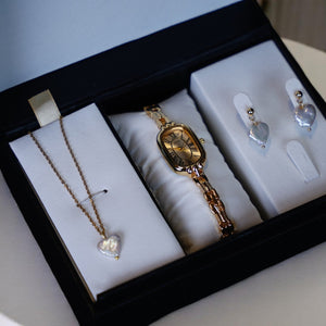 Luxury Heart Jewelry Gift Set – Freshwater Pearl Pendant, Watch & Earrings
